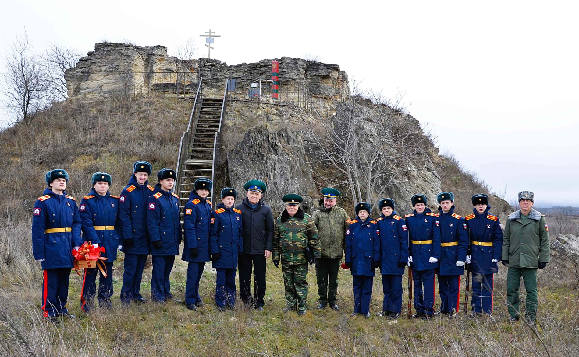 Участники события - ветераны пограничной службы краевого Совета во главе с председателем Виктором Лозовым и кадеты казачьего корпуса с их воспитателем Андреем Мироненко посетили памятное место в окрестностях Ставрополя, у озера Кравцово, где в скале установлен мемориал в честь Евгения Родионова – пограничника, героически погибшего у чеченского села Бамут в ходе первой чеченской войны.