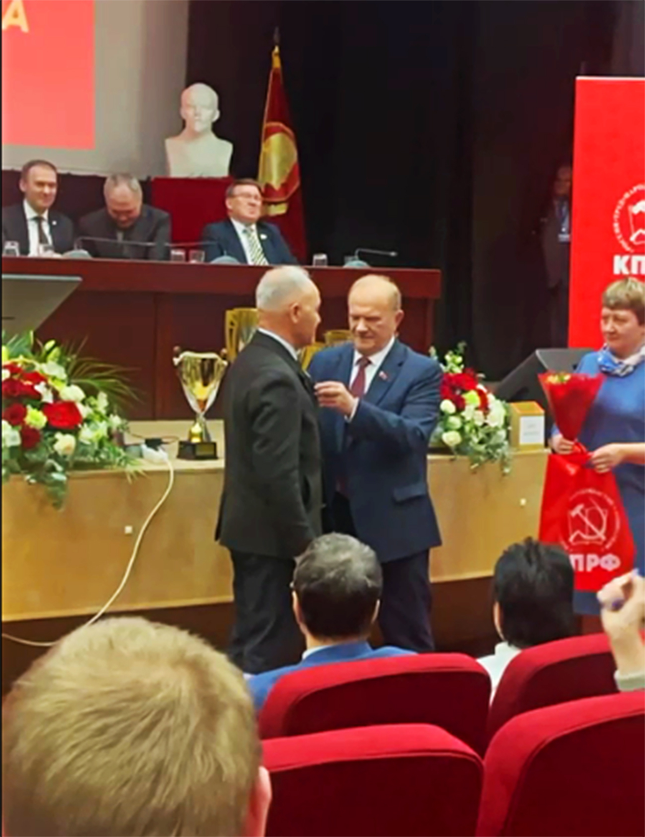 На прошедшем в подмосковных «Снегирях» II ноябрьском Пленуме ЦК КПРФ с повесткой: «О задачах КПРФ по выполнению Программы Победы» депутат Думы Ставропольского края, председатель Совета Ставропольского регионального отделения «Российского Совета ветеранов пограничной службы», секретарь Ставропольского крайкома КПРФ, кавалер Ордена «Мужества» и медали «За отвагу», участник СВО Виктор Лозовой за заслуги перед партией награждён высшей партийной наградой Центрального Комитета КПРФ - орденом «Партийная доблесть» и ценным подарком.