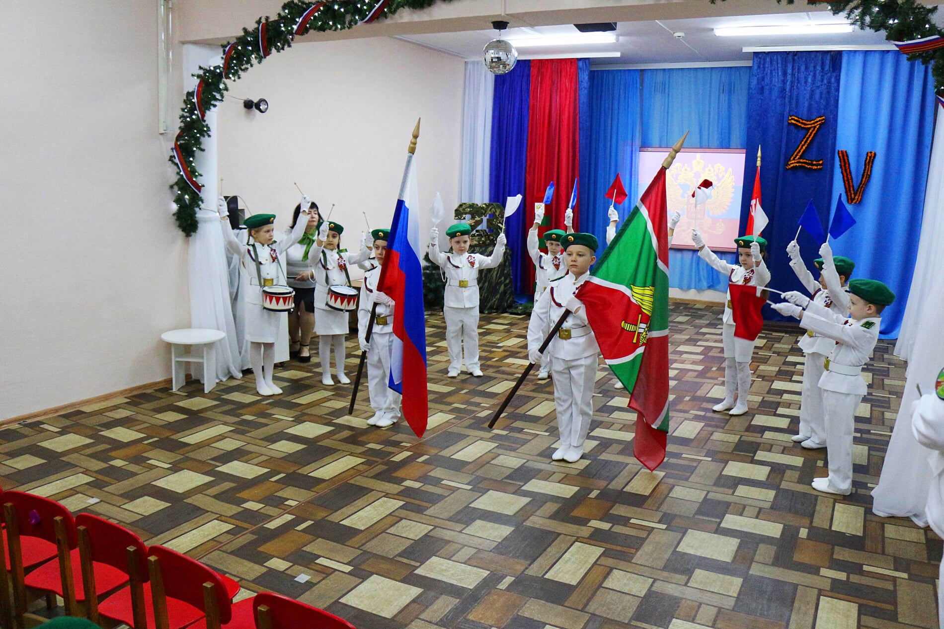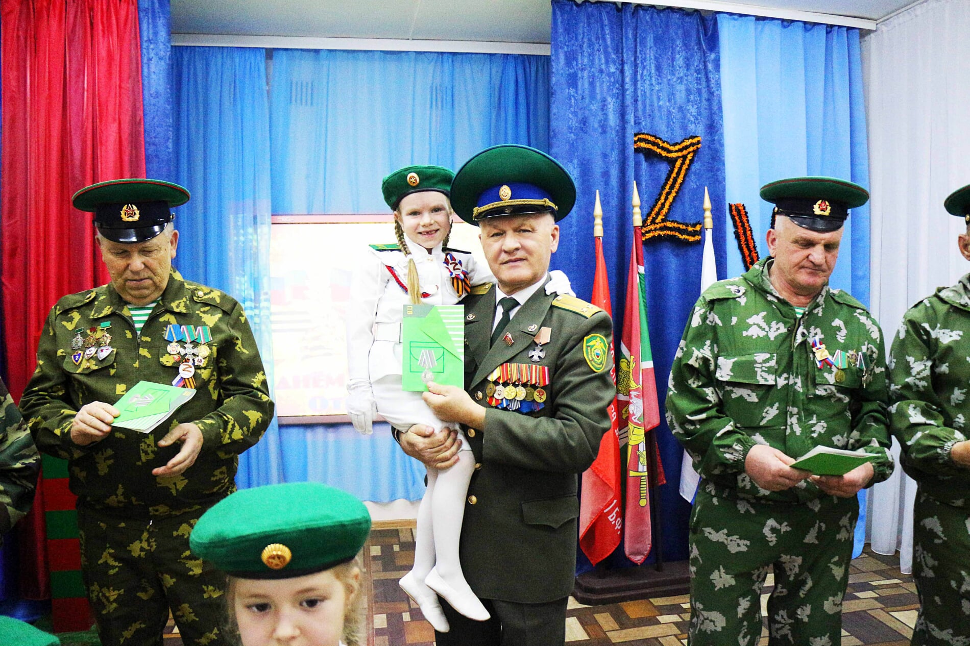 Событие проходило на базе детского сада «Лесная Сказка», где собрались ветераны, руководство и коллектив детсада, а также родители воспитанников. Гостей встречали юные пограничники отряда «Вымпелята» со своим руководителем Еленой Тарановой и кадеты класса пограничной направленности 7-й гимназии с классным руководителем Натальей Емельновой. Ребята пришли с портретами своих дедов и отцов – героев Великой Отечественной войны и специальной военной операции, внёсших неоценимый вклад в победу над нацизмом.