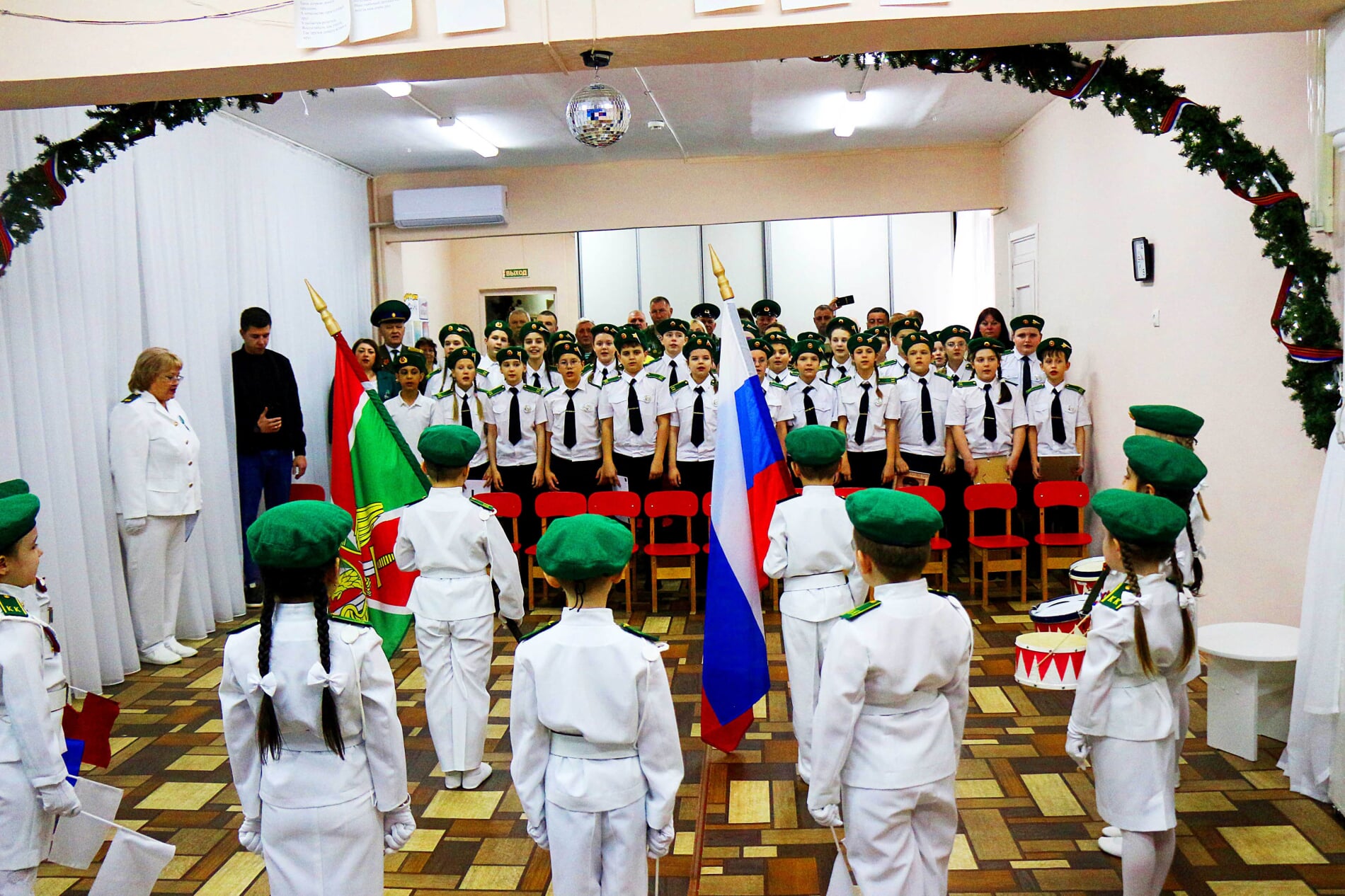 Праздник открыли малыши кадетского пограничного отряда под песню «Служить России». Затем, красивым строем вышел весь отряд, впереди которого гордо шагали знаменосцы, крепко держа Флаг РФ и Флаг Пограничных войск.